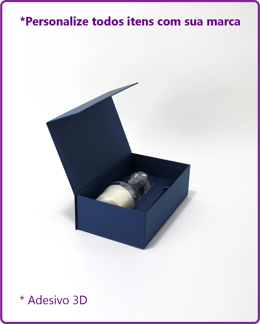 Caixa Cartonada; modelo tampa imã revestida em papel Color plus, tamanho 25,8×15,0x8,0cm.
