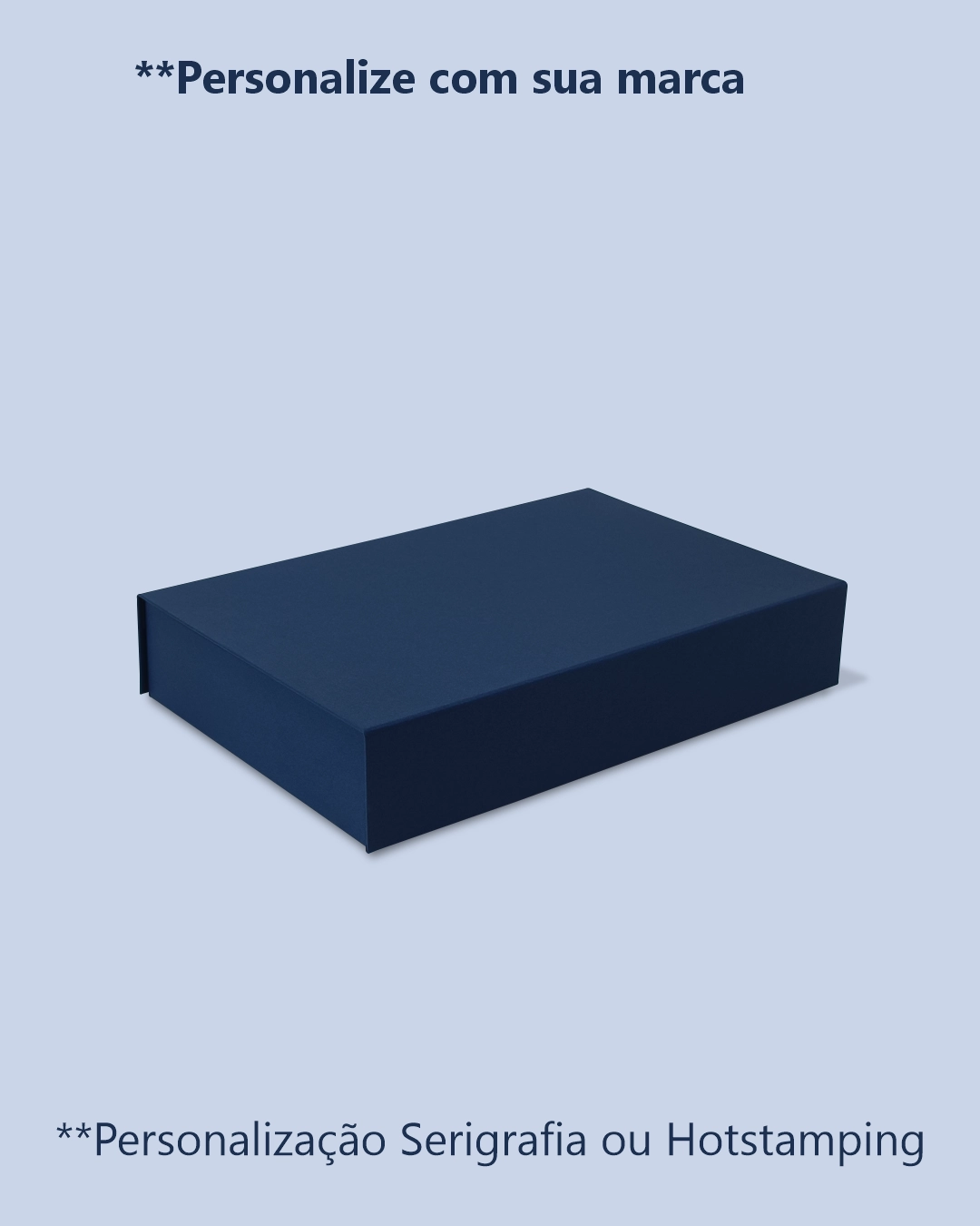 Caixa Cartonada; modelo tampa imã revestida em papel Color plus, tamanho 32,5×20,5×6,0cm.